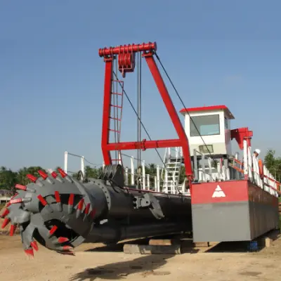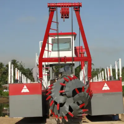 Máy nạo vét đầu cát nạo vét sông nhỏ là loại máy nạo vét hút cắt sông lắp ráp, được điều khiển bằng thủy lực. Nó được sử dụng để nạo vét kênh sông, nạo vét kênh và lưu trữ nước. Thân tàu nạo vét sử dụng kết cấu tháo dỡ và dạng hộp, loại tháo dỡ có thể lắp ráp tại nơi làm việc dễ dàng và vận chuyển bằng đường bộ, đường sắt và container phù hợp, thuận tiện trong lắp đặt và di chuyển nơi làm việc từ nơi này sang nơi khác. Hệ thống điện có thể được thiết kế cho hệ thống điện hoặc hệ thống dẫn động động cơ diesel theo yêu cầu của khách hàng. Các thiết bị trên máy nạo vét sông nhỏ có đầu máy cắt cát như ống thổi: thiết bị di chuyển ngang, thiết bị nâng thang máy cắt, mũi nhọn và cần cẩu boong. Quy trình làm việc như sau: đầu cắt cắt cát và bùn dưới nước thành hỗn hợp bùn, sau đó thông qua bơm nạo vét đến đường ống trên máy nạo vét đầu cát nạo vét sông nhỏ; cuối cùng bùn sẽ được thải ra bằng đường ống trên đất liền đến nơi cần thiết.